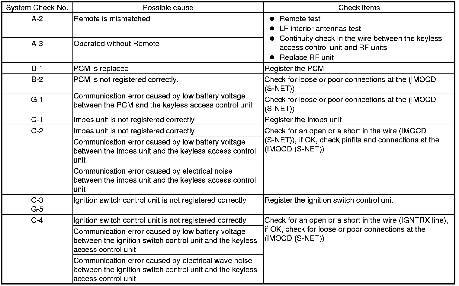 - Before testing, troubleshoot the keyless access system first using SELF CHECK, and if any malfunction is found, troubleshoot it first.