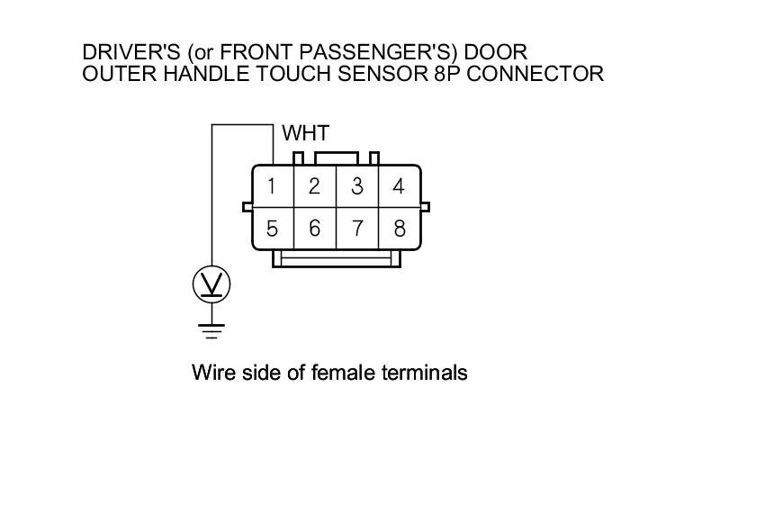 11. Measure the voltage between outer handle touch sensor 8P connector terminal No. 1 and body ground.