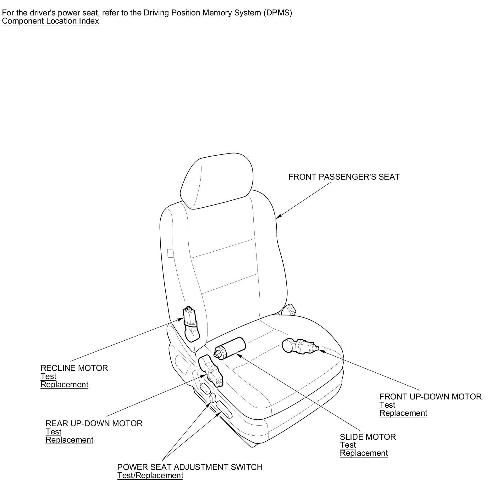 Power Seats Component Location Index