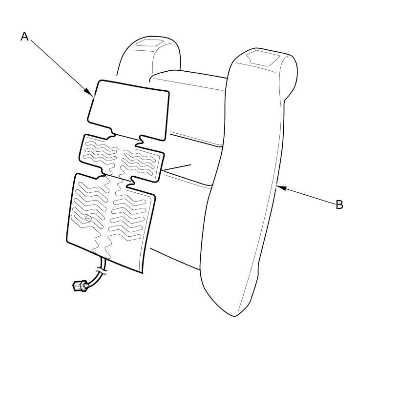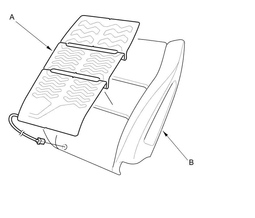 2. Carefully remove the seat-back heater (A) from the seat-back pad (B).