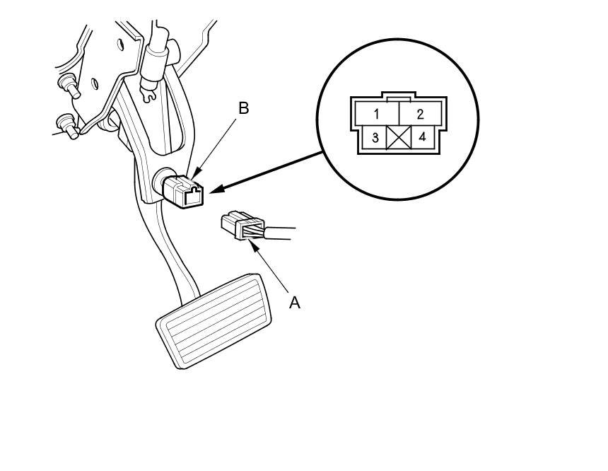 1. Disconnect the 4P connector (A) from the brake pedal position switch (B).