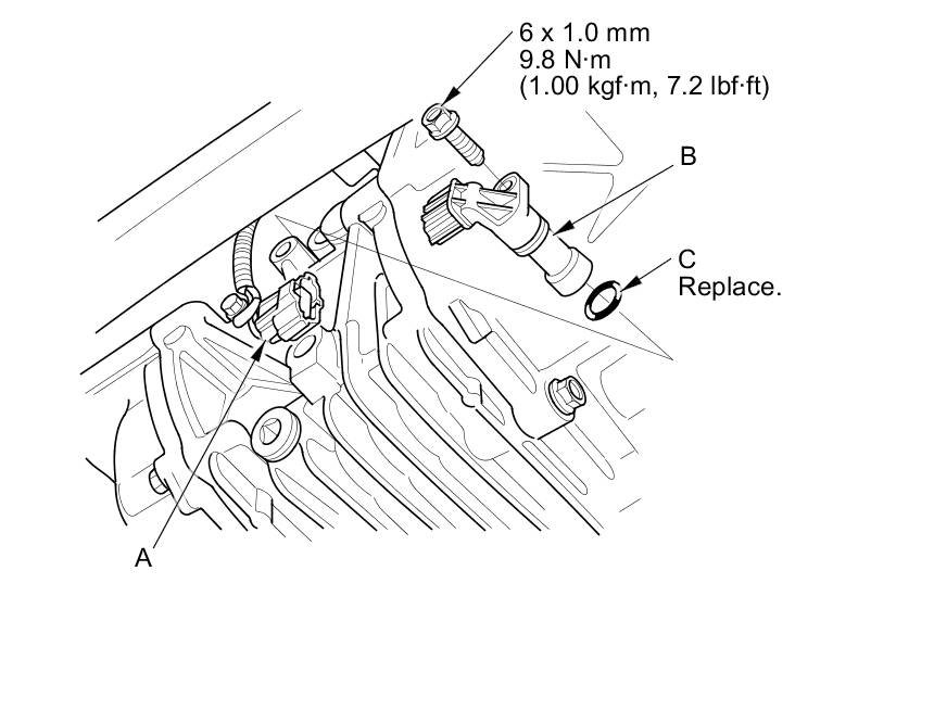 3. Install the hypoid gear speed sensor with a new O-ring (C) in the reverse order of removal.
