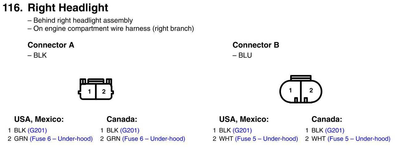 View 116 - Right Headlight Connector View