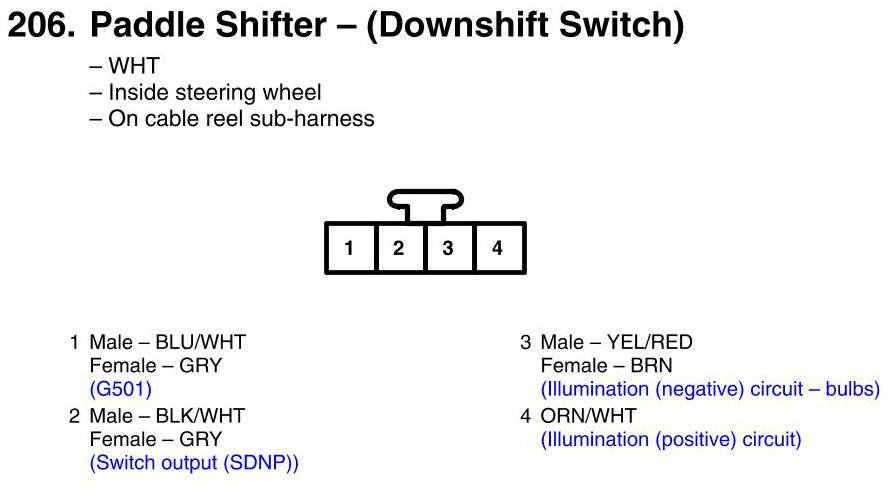 View 206 - Paddle Shifter - (Downshift Switch) Connector View
