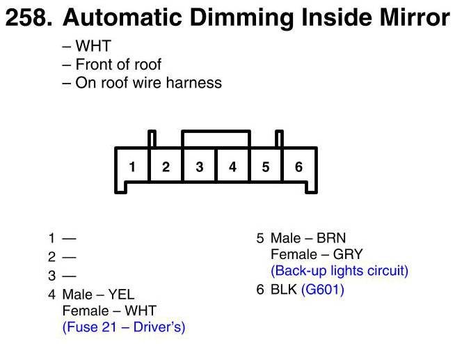 View 258 - Automatic Dimming Inside Mirror Connector View