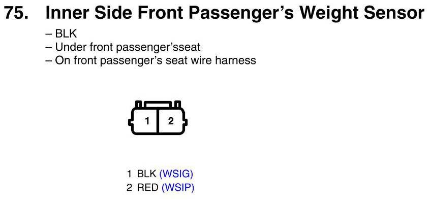 View 75 - Inner Side Front Passenger's Weight Sensor Connector View