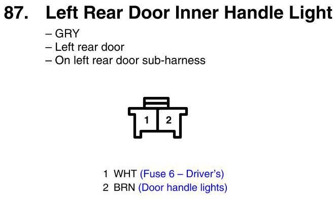 View 87 - Left Rear Door Inner Handle Light Connector View
