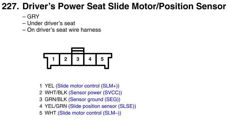 Driver's Power Seat Slide Motor/Position Sensor Connector View