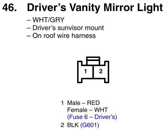 Driver's Vanity Mirror Light Connector View