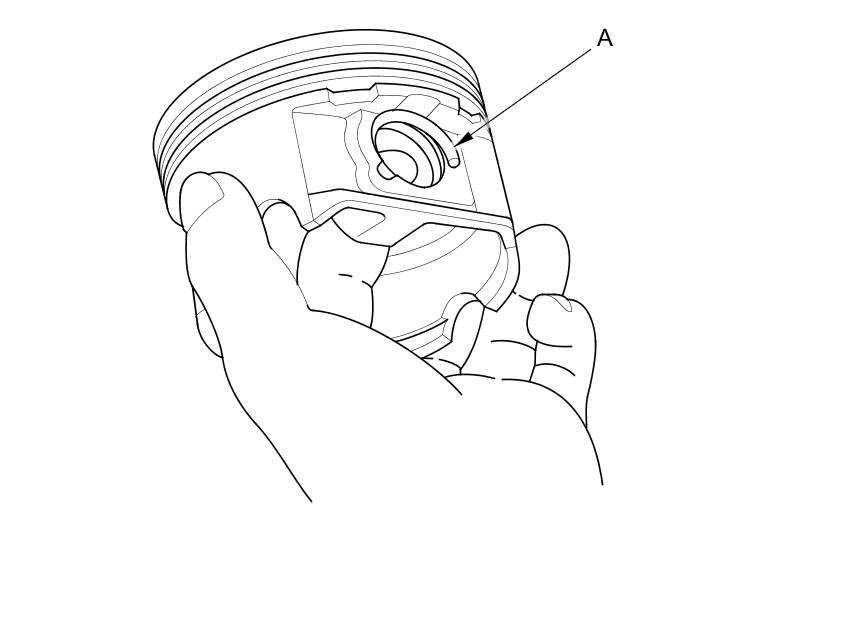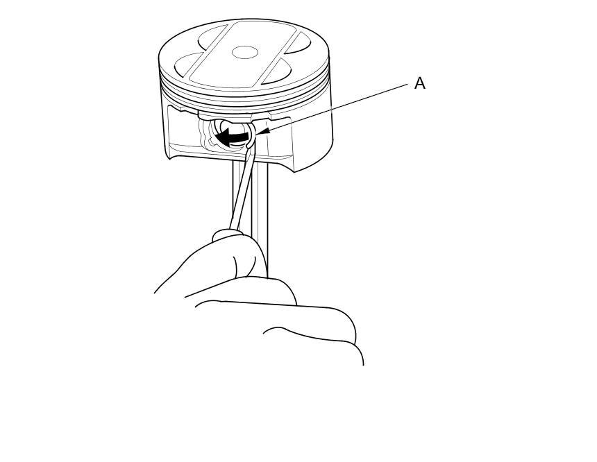 1. Install a piston pin snap ring (A) only on one side.