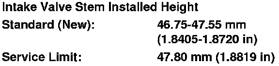 9. If the valve stem installed height is over the service limit, replace the valve and recheck. If it is still over the service limit, replace the cylinder head; the valve seat in the head is too deep.