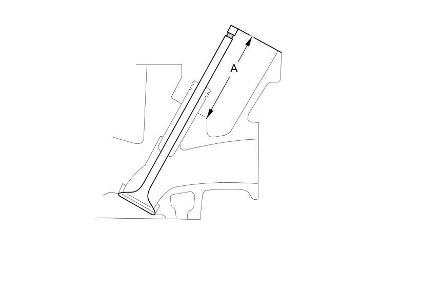 8. Insert the intake and exhaust valves in the head, and measure the valve stem installed height (A).