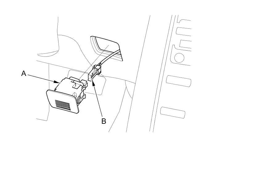 1. Remove the in-car temperature sensor (A) from the driver's dashboard lower cover, then disconnect the 4P connector (B).