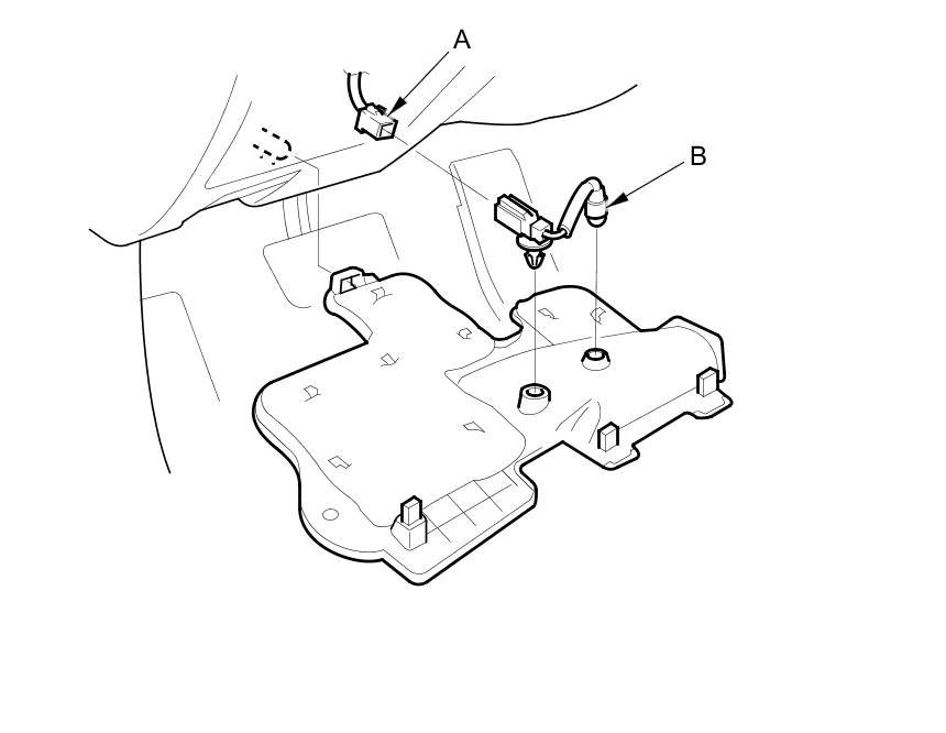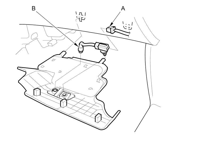 2. Disconnect the 2P connector (A) from the front passenger's footwell light (B).