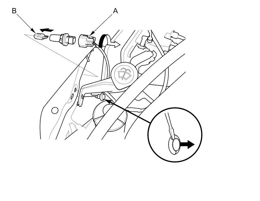 3. For the right parking light/front side marker light, remove the clip from the windshield washer reservoir.