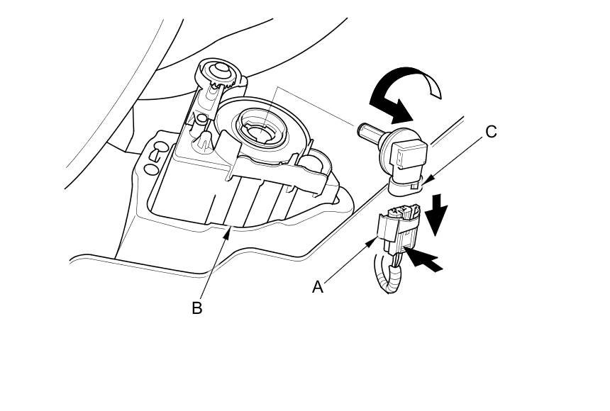 3. Turn the bulb socket (C) 45 ° counterclockwise to remove it from the housing.