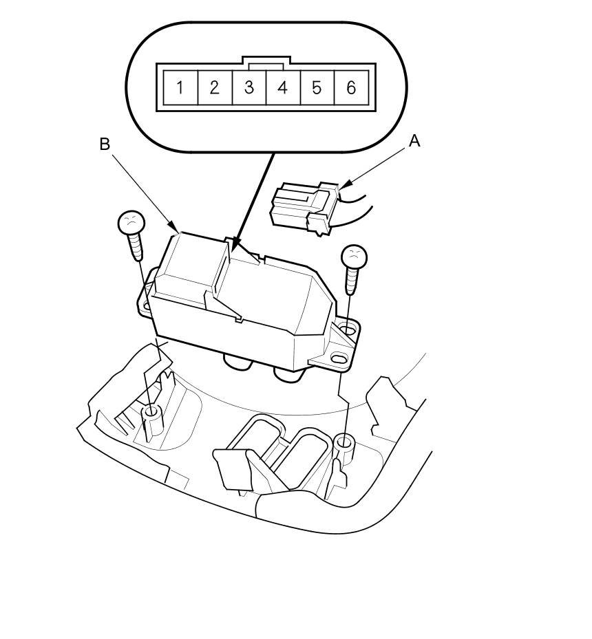 2. Disconnect the 6P connector (A) from the dashlights brightness controller (B).