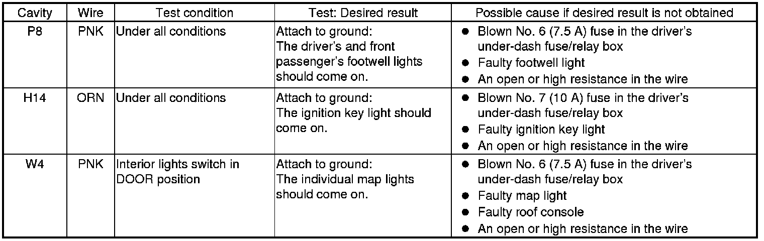 Entry Lights Control System (MICU, Driver's and Passenger's MPCS Unit, and Left and Right Power Window Switch) Input Test