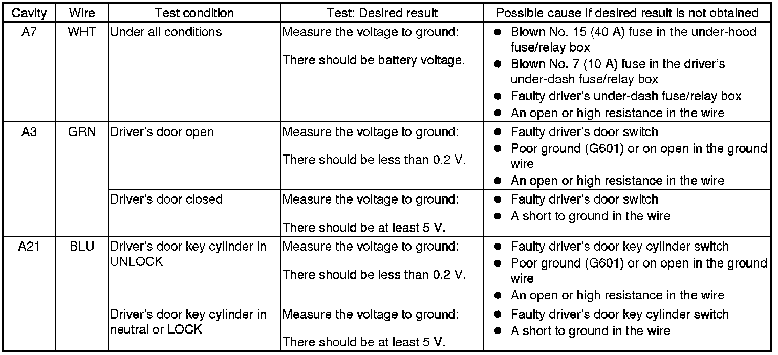 NOTE: Check the keyless access system's DTC with the HDS before testing. If any DTC's indicated, go to the indicated DTC's troubleshooting.