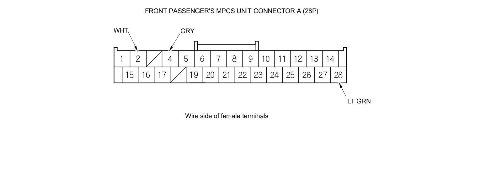 15. Disconnect front passenger's MPCS unit connector A (28P).
