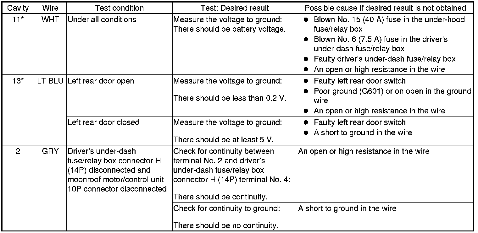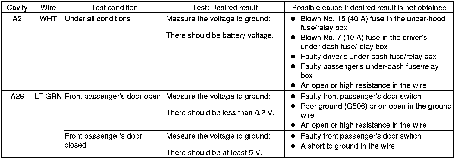 6. Reconnect the connectors to the driver's under-dash fuse/relay box, and do the following input tests.