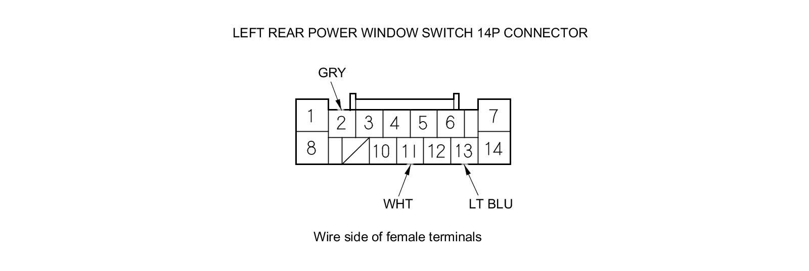20. Remove the left rear power window switch Passenger's Power Window Switch Test/Replacement.