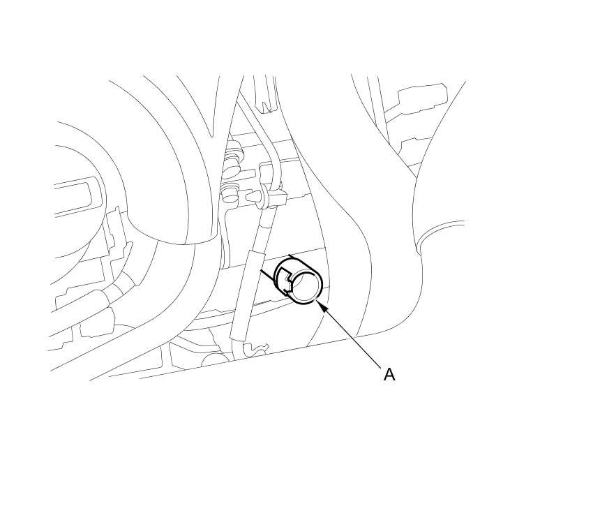 7. Remove the ATF dipstick, and refill the transmission with the recommended fluid through the dipstick guide tube opening (A). Always use Acura ATF DW-1 Automatic Transmission Fluid (ATF). Using a non-Acura ATF can affect shift quality.