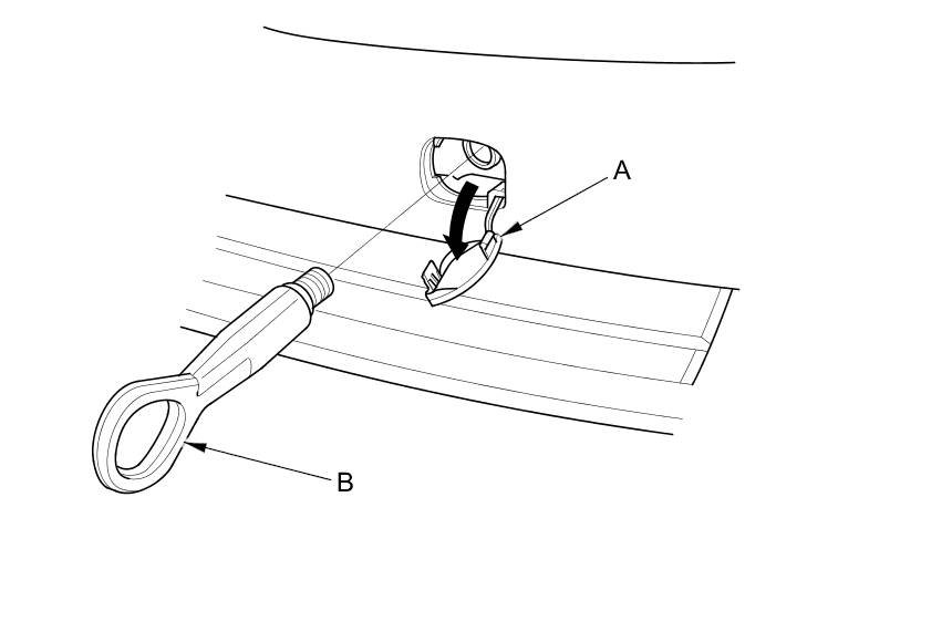 3. Screw in the towing hook (B), and tighten it securely by hand.