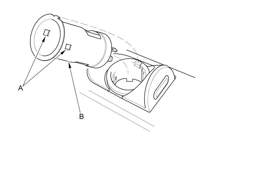 8. Gently depress the tabs (A), then remove the housing (B) from the panel. Note the location of the indexing tabs (C).