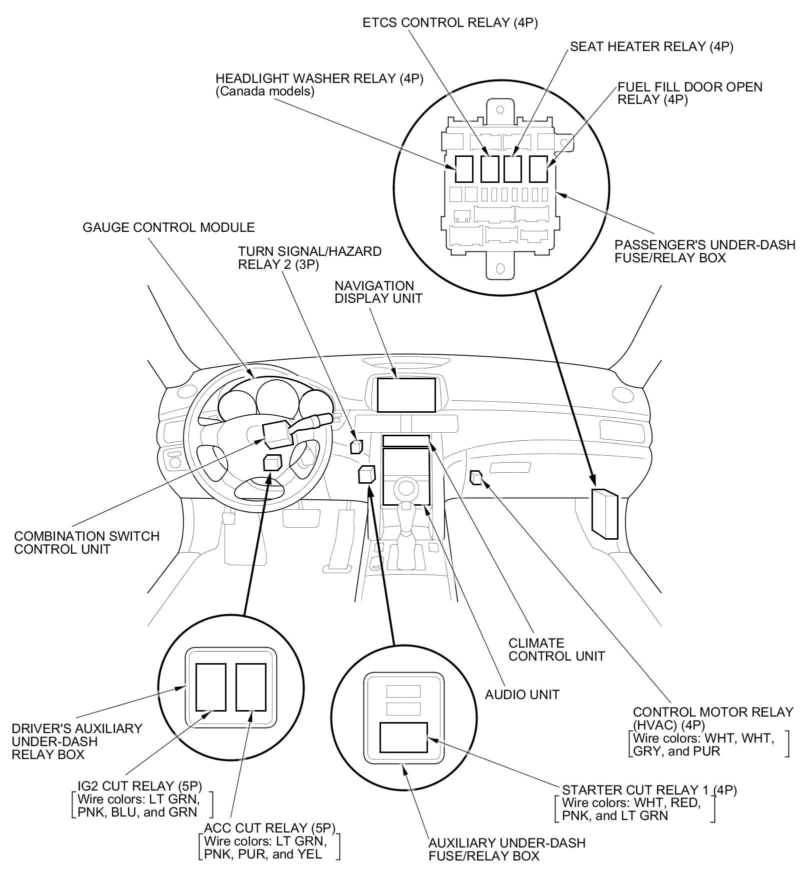 Relay and Control Unit Locations - Dashboard