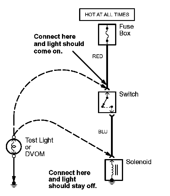2. Connect the other lead of the test light or DVOM to the point you want to check.