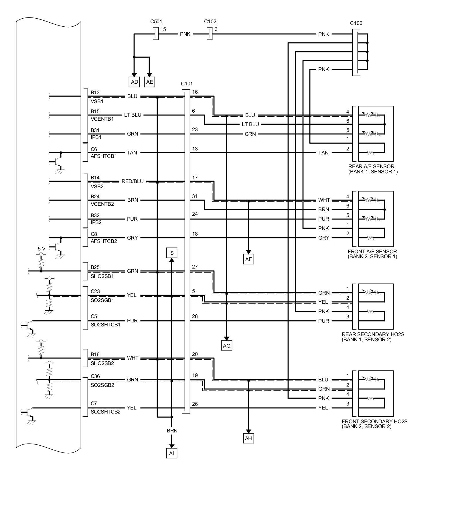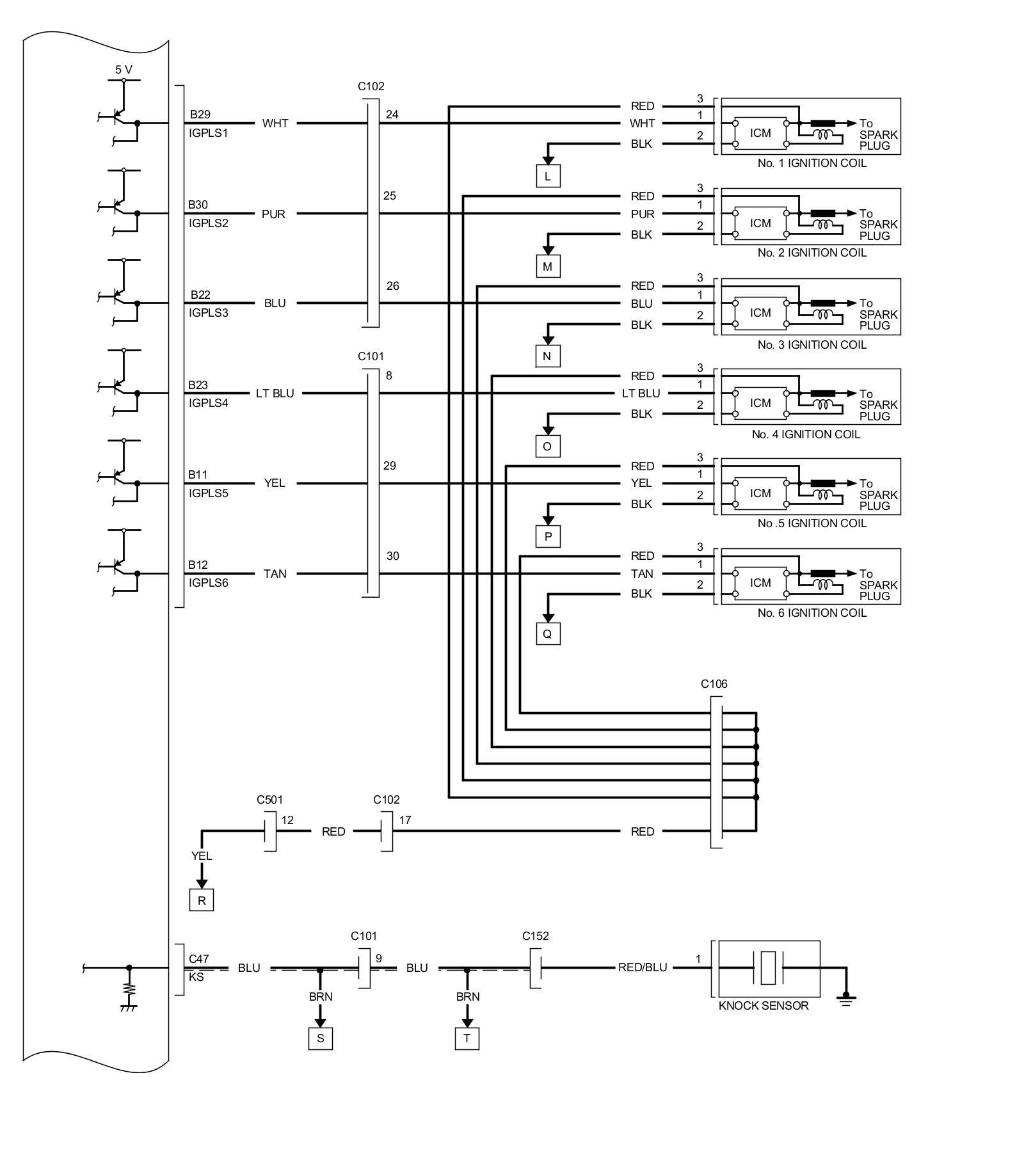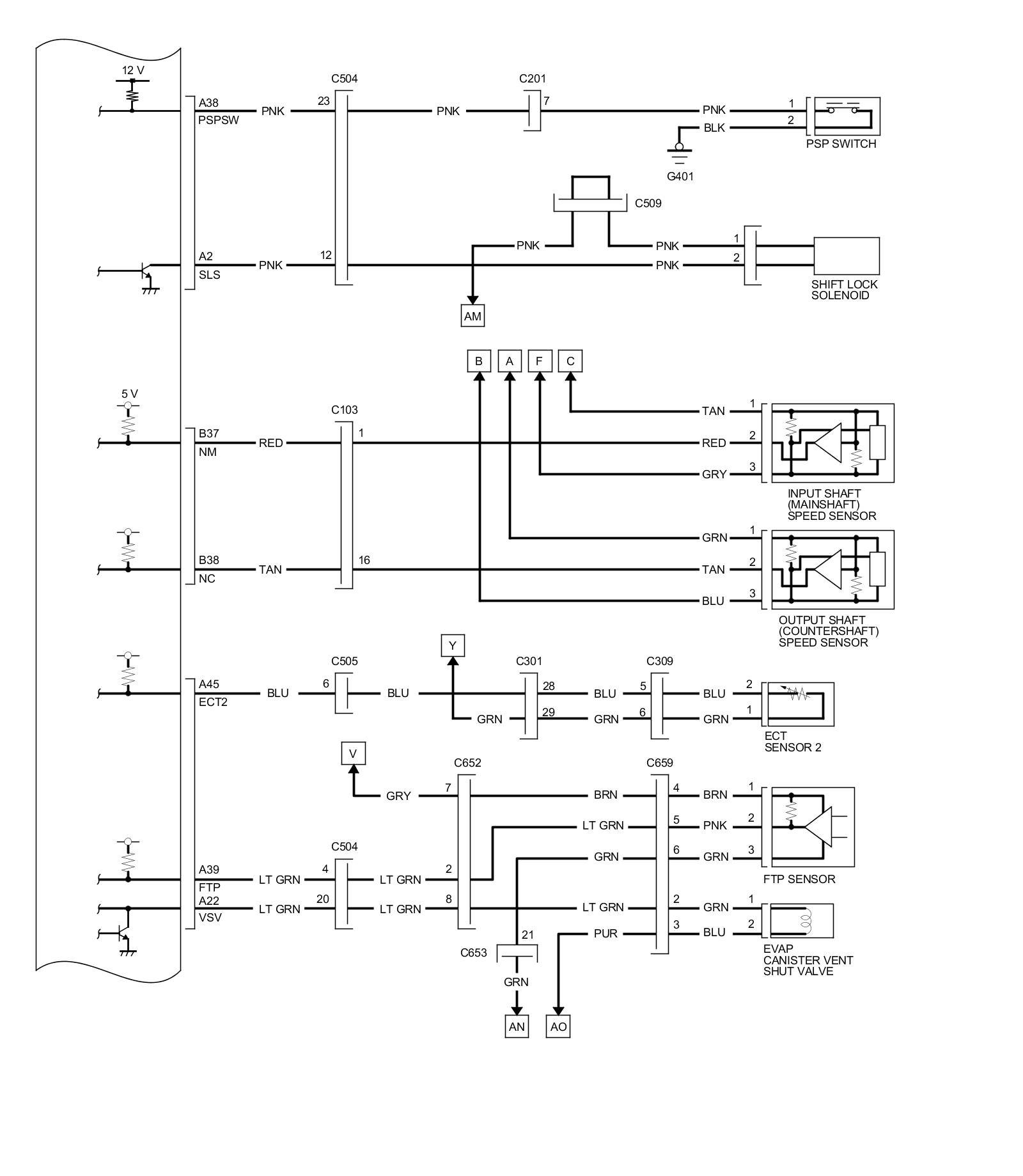 PCM Inputs and Outputs at PCM Connector C (circle) (49P)