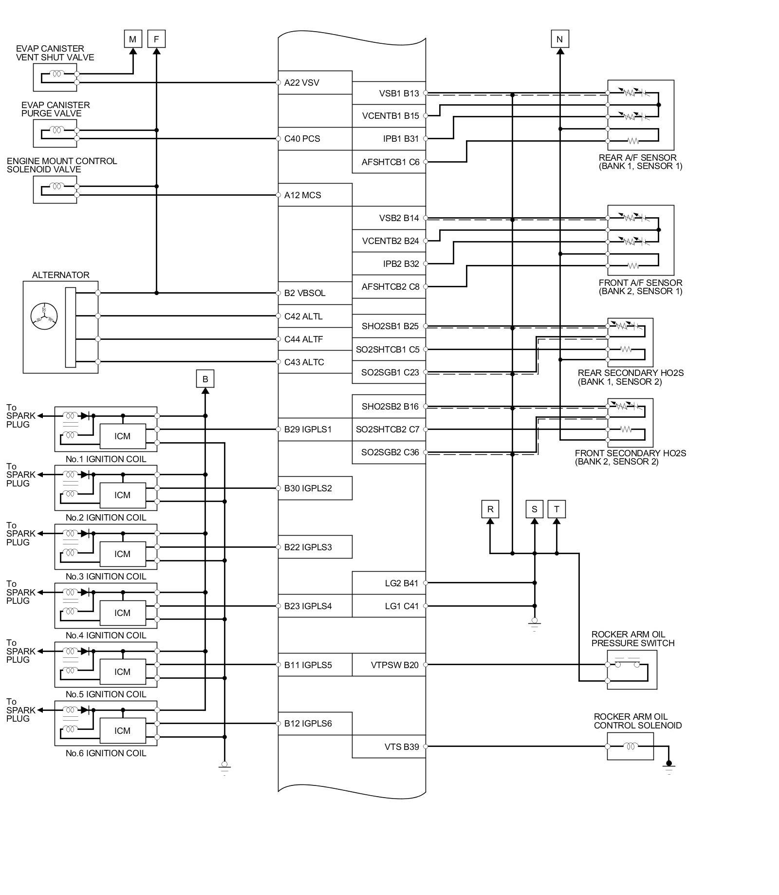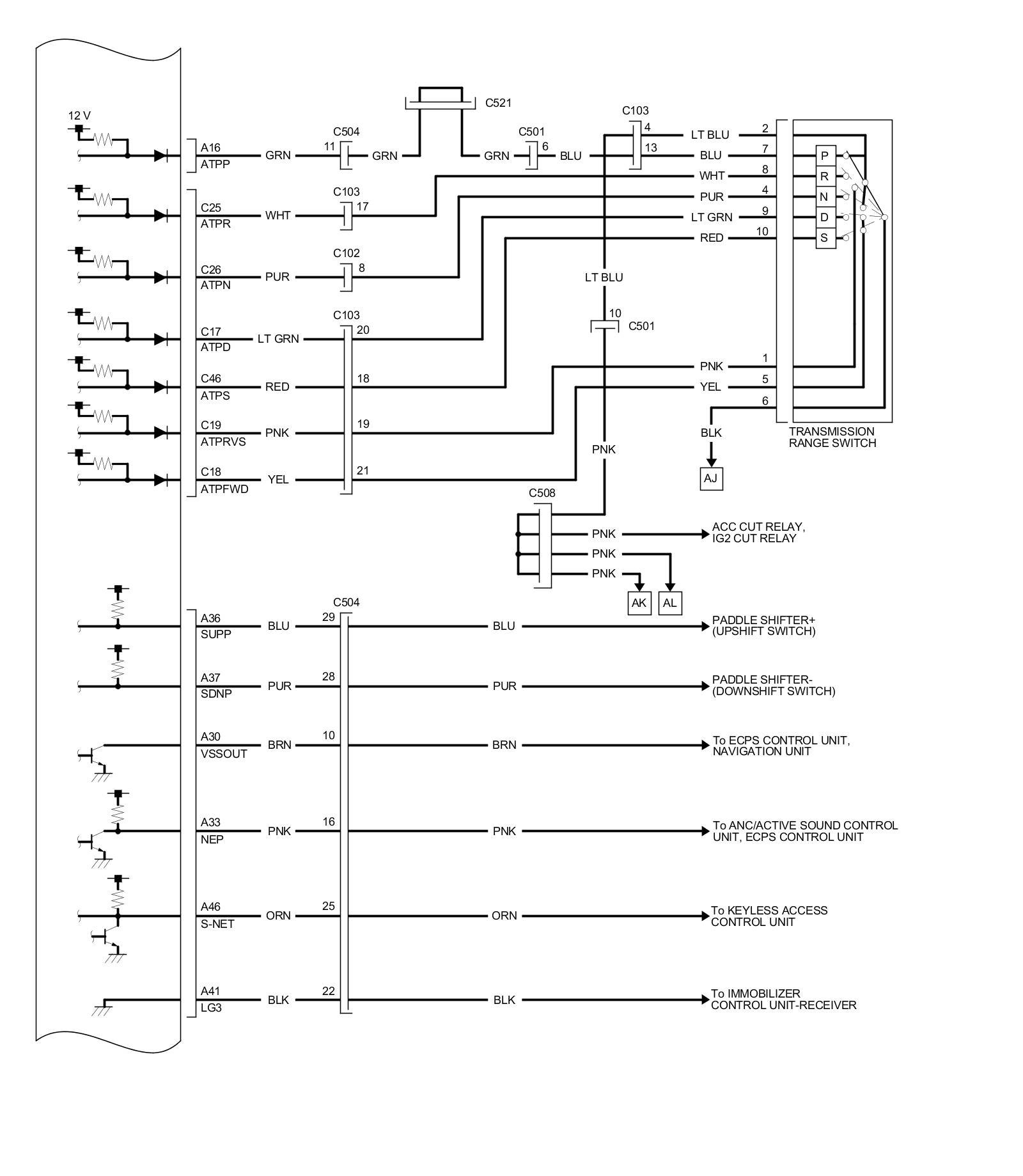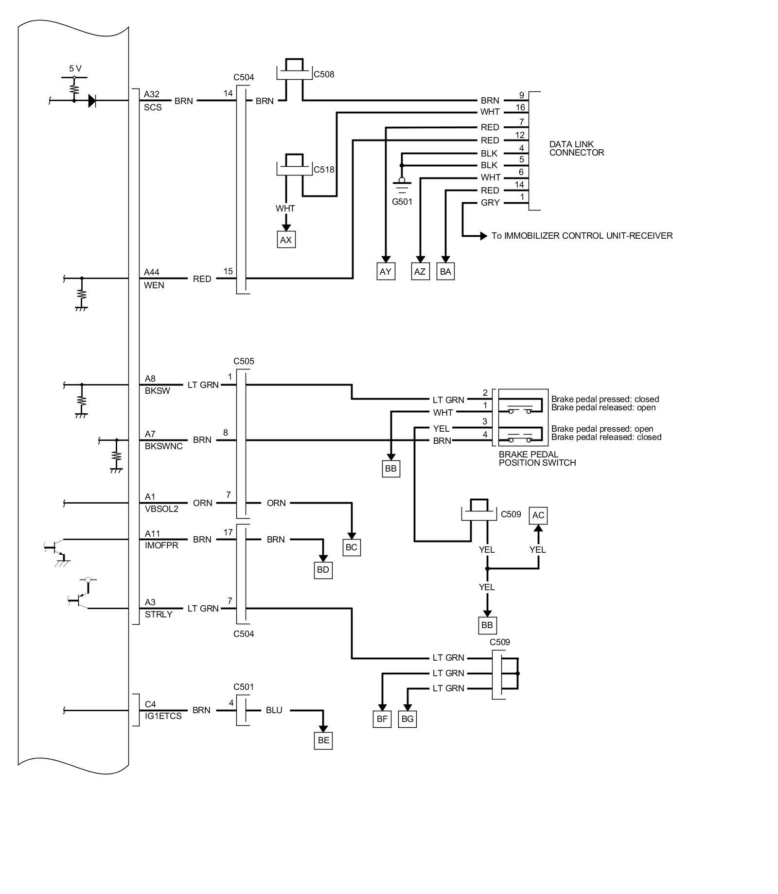 PCM Inputs and Outputs at PCM Connector C (circle) (49P)