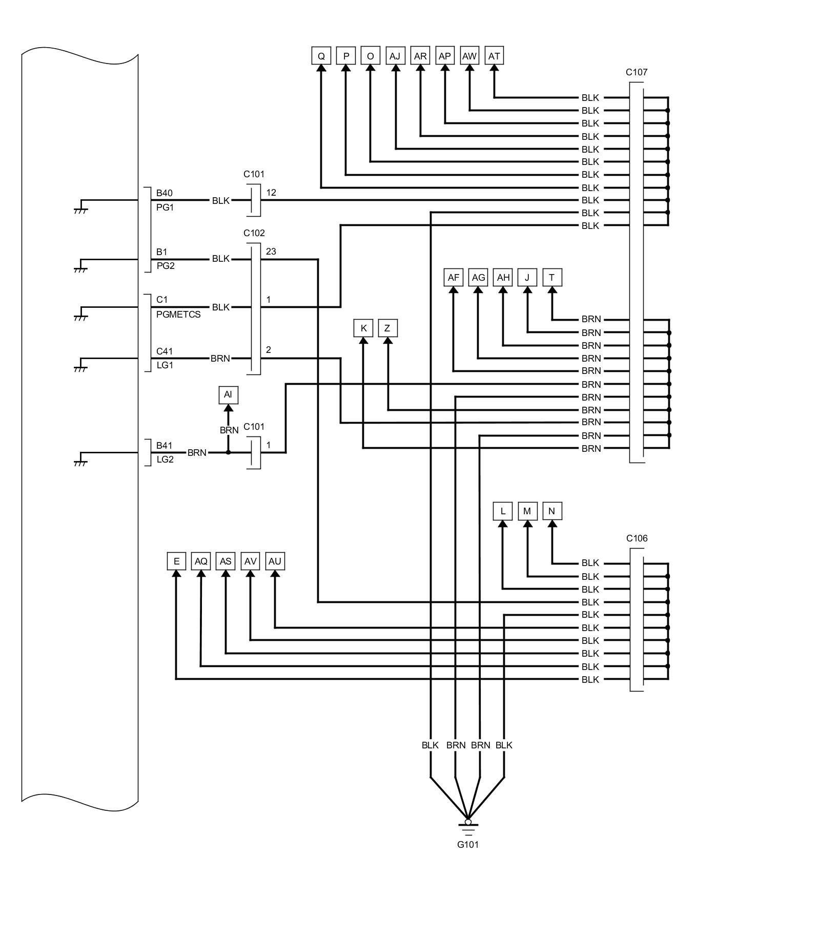 PCM Inputs and Outputs at PCM Connector A (square) (49P)