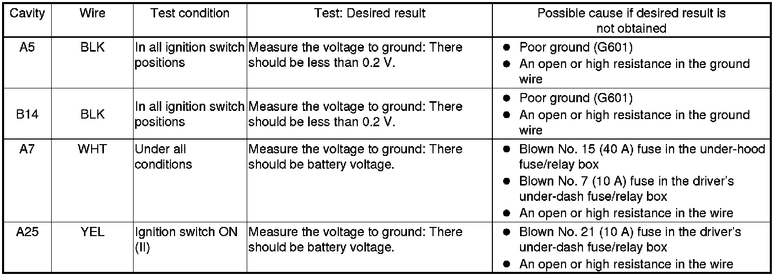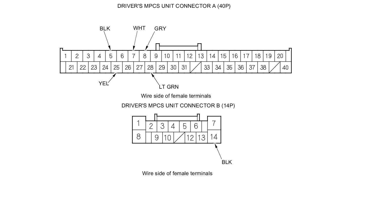 6. Disconnect driver's MPCS connector A (40P), and do the following input tests.