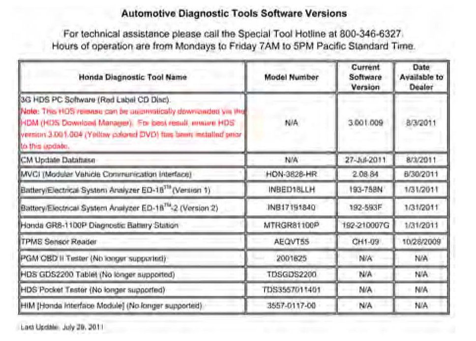For questions about the Acura-supplied updating equipment, call American Hondas Special Tools Hotline.