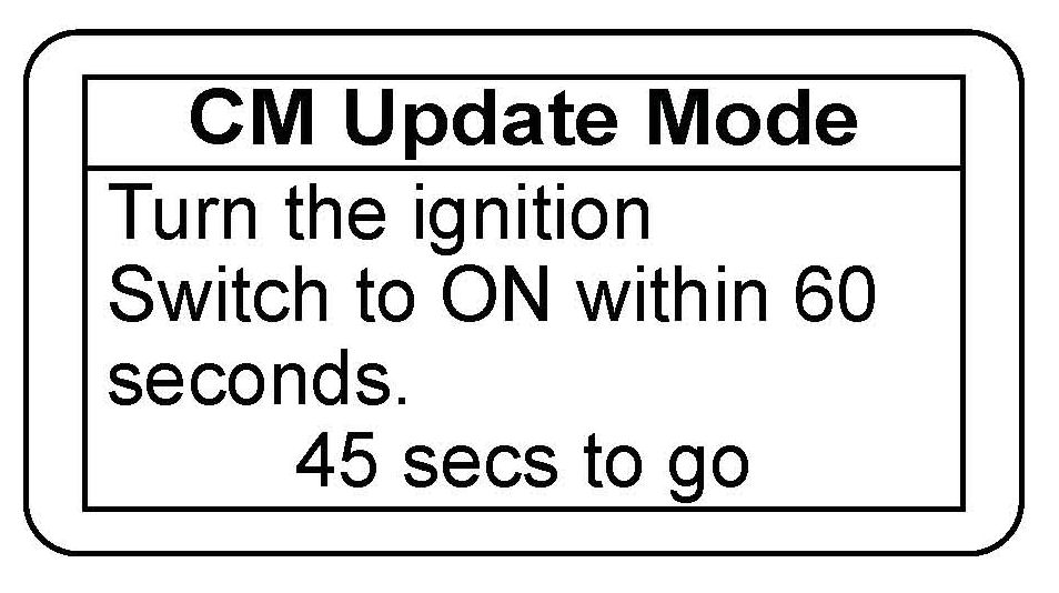 16. If an error occurs during the updating procedure, an error message appears. Keep the ignition switch in ON (II). Press ENTER to display the error code. Refer to the CM Update Error Code Table and Error Messages in the MVCI User Guide for more information about the code and its solutions.