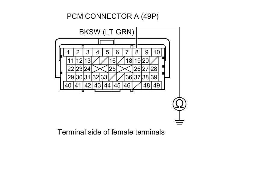 8. Check for continuity between PCM connector terminal A8 and body ground.