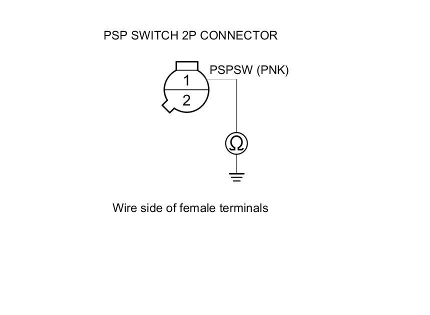 24. Check for continuity between PSP switch 2P connector terminal No. 2 and body ground.