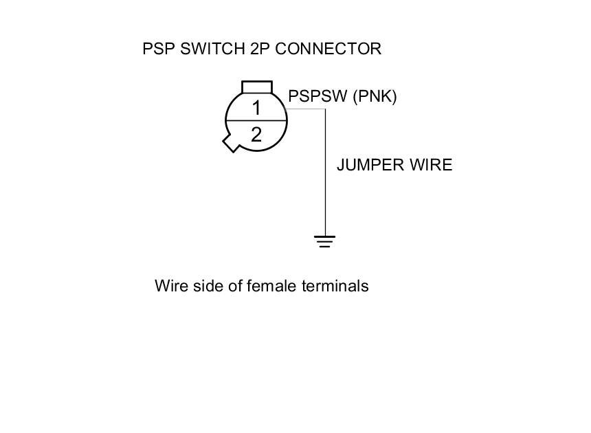 19. Remove the jumper wire from the PSP switch 2P connector.