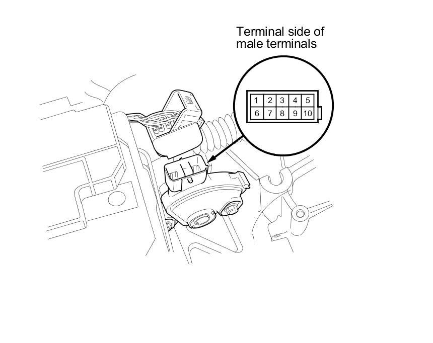 3. Check for continuity between the terminals at the transmission range switch connector. There should be continuity between the terminals in the following table for each transmission range switch position.