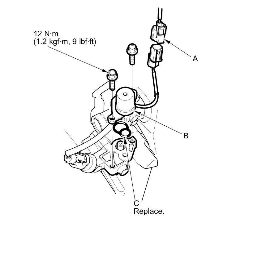 3. Install the parts in the reverse order of removal with a new O-ring (C).