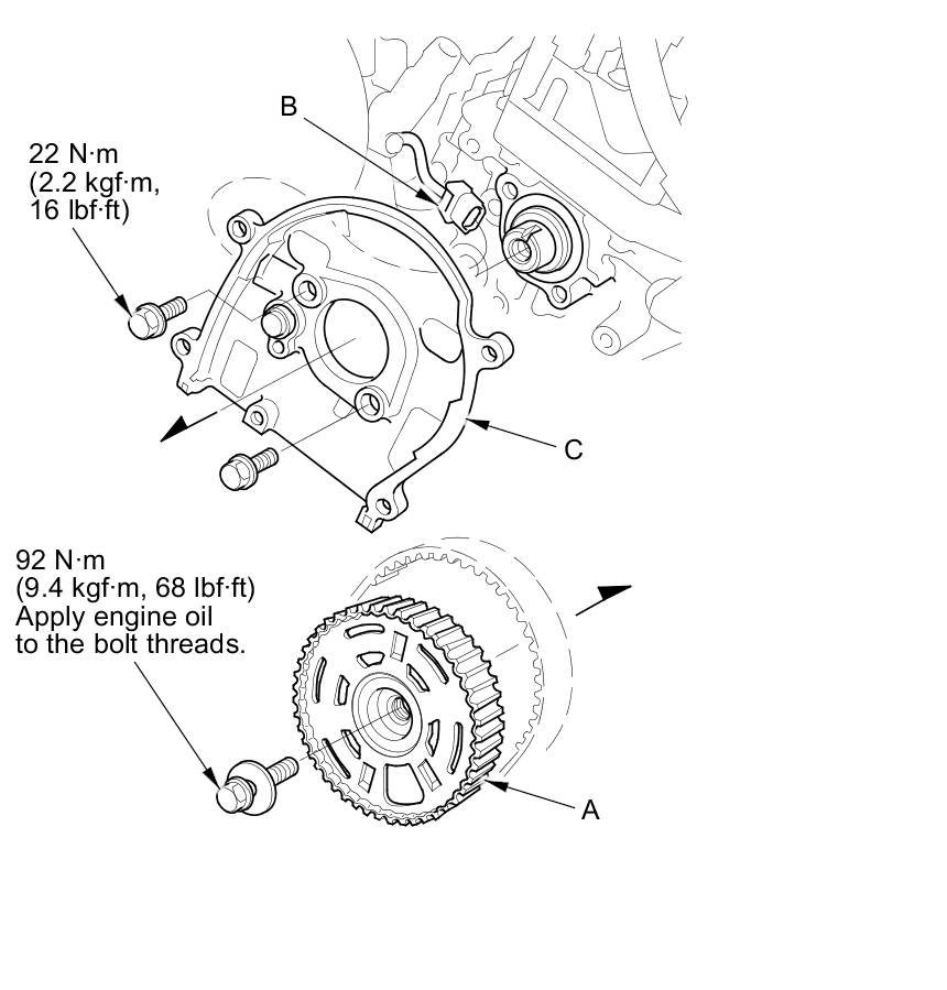 3. Disconnect the CMP sensor connector (B), then remove the back cover (C).