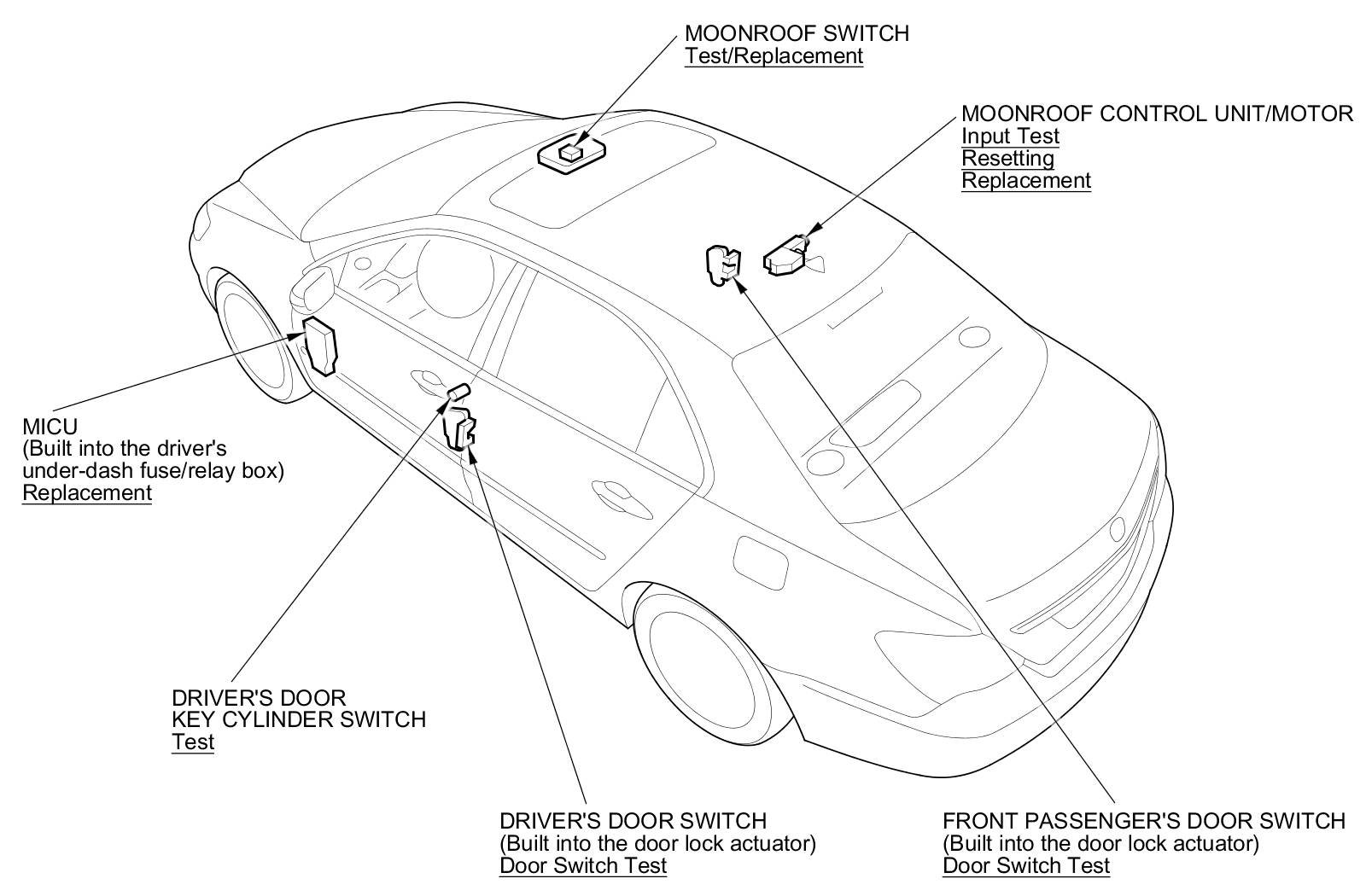 Moonroof Electrical Component Location Index