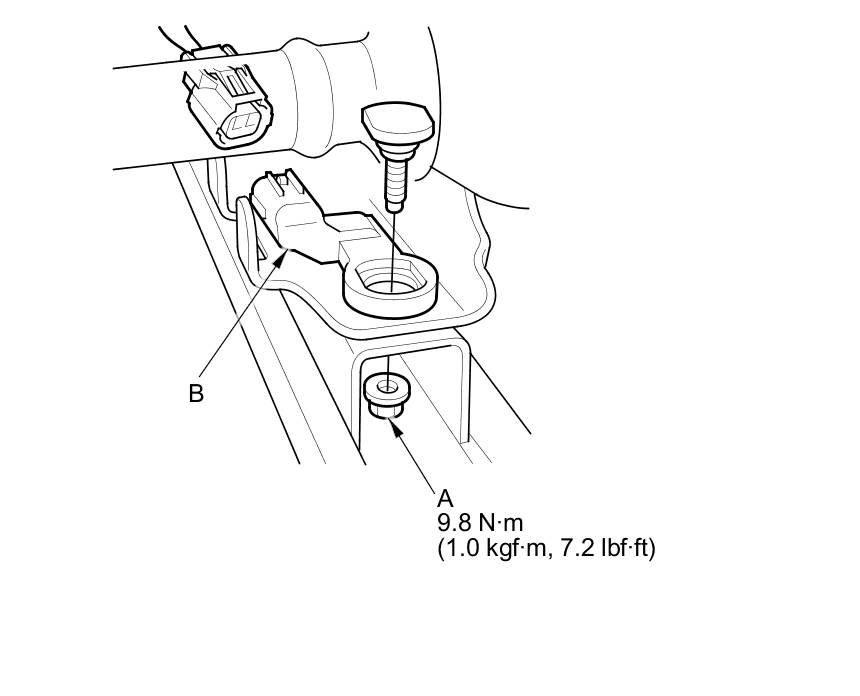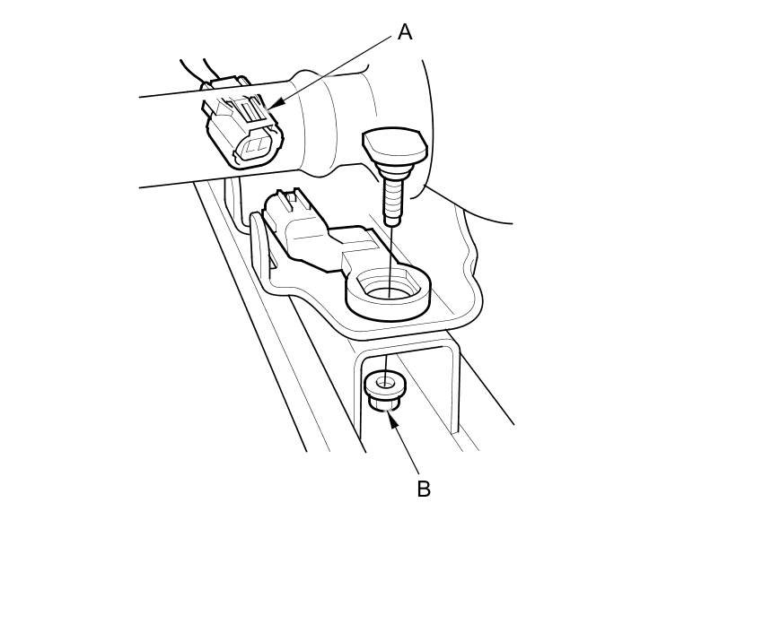 1. Install the new driver's seat position sensor with a mounting nut (A), then connect the driver's seat wire harness 2P connector to the driver's seat position sensor (B).