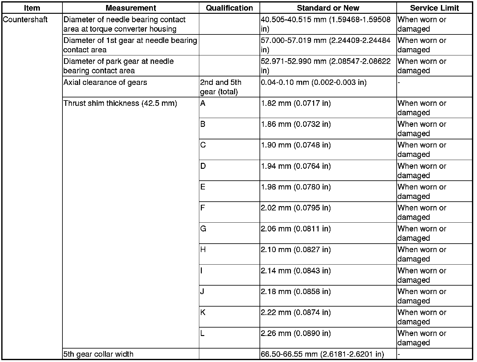 Countershaft Specification(s)