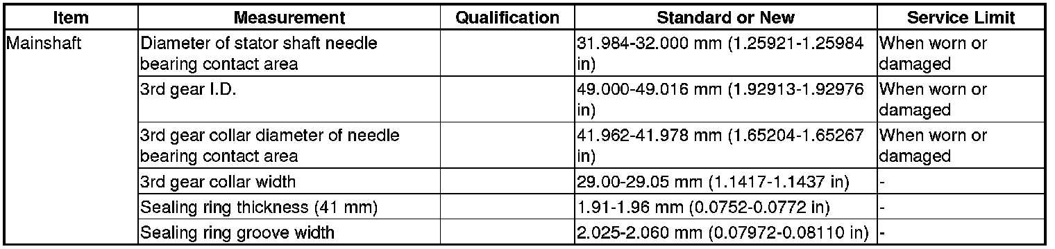 Mainshaft Specification(s)