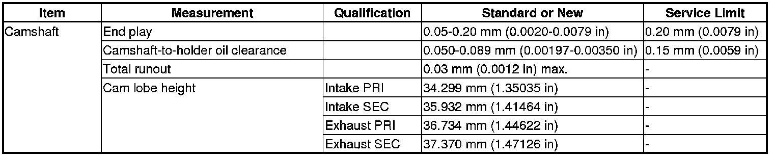 Camshaft Specification(s)