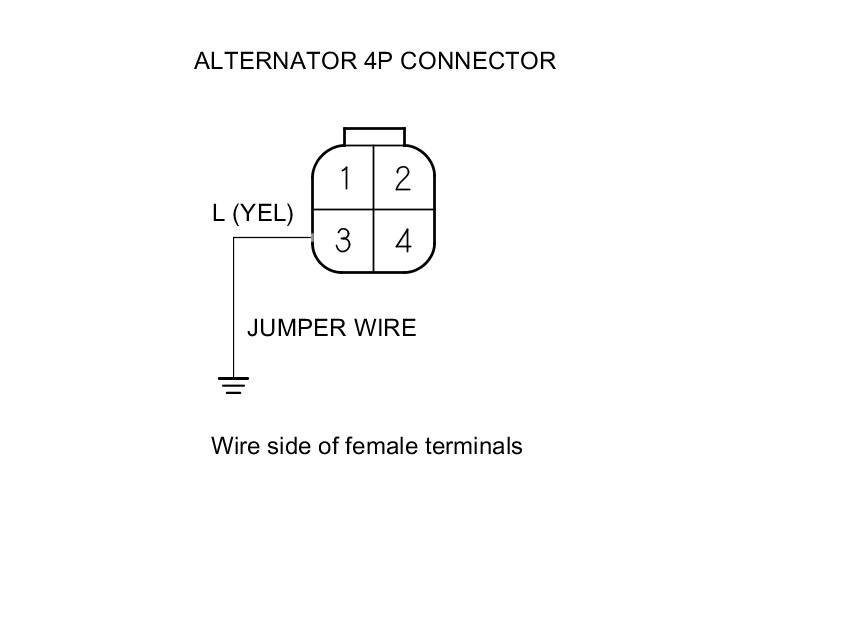 17. Connect alternator 4P connector terminal No. 3 and body ground with a jumper wire.