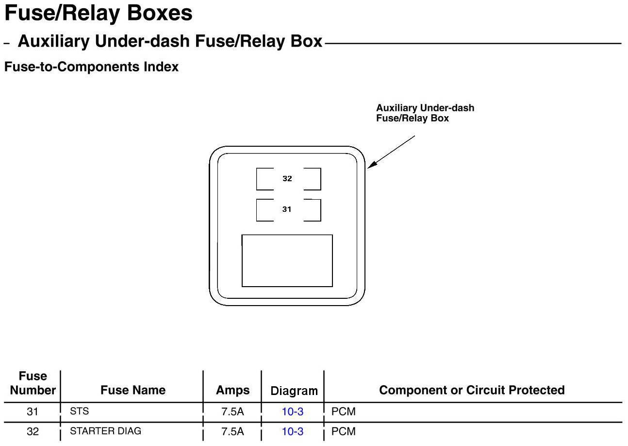 Auxiliary Under-dash Fuse/Relay Box - Fuse-to-Components Index